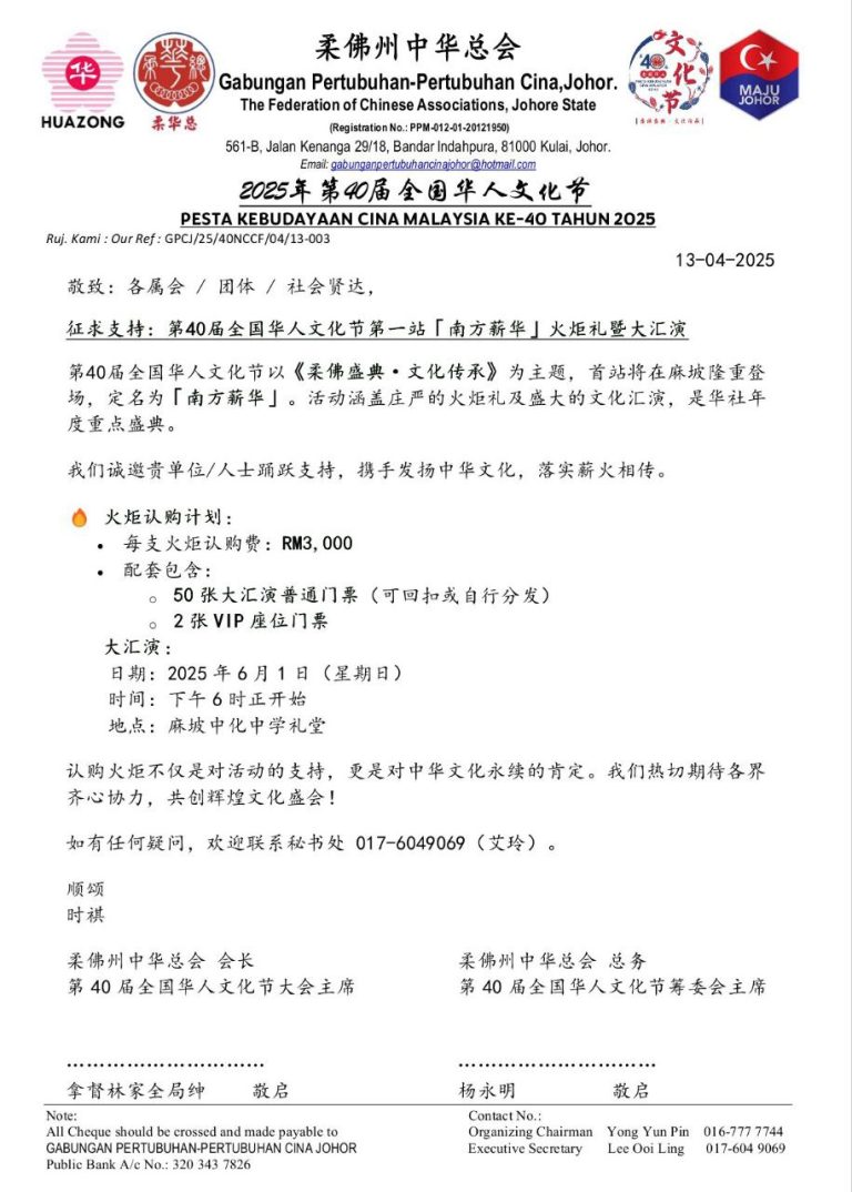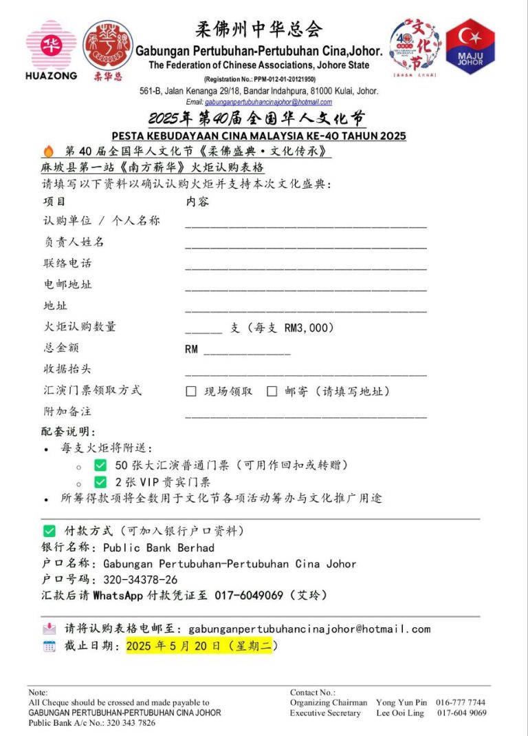 第 40 届 华 人 文 化 节 ( 1 / 6 / 2025 @ 麻 坡 )